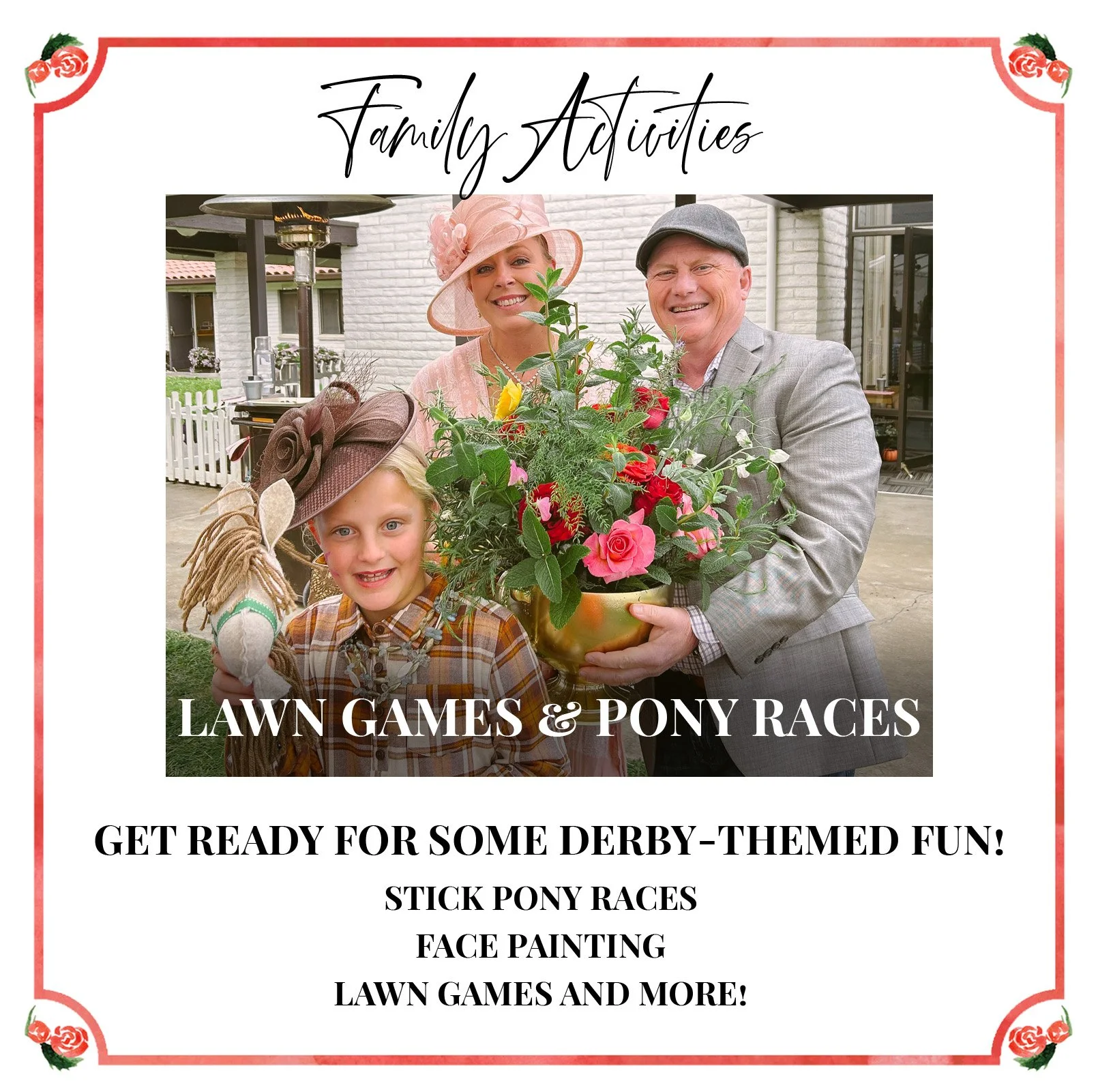 Betting Tickets, Meals and Drinks for everyone are available for purchase on site.