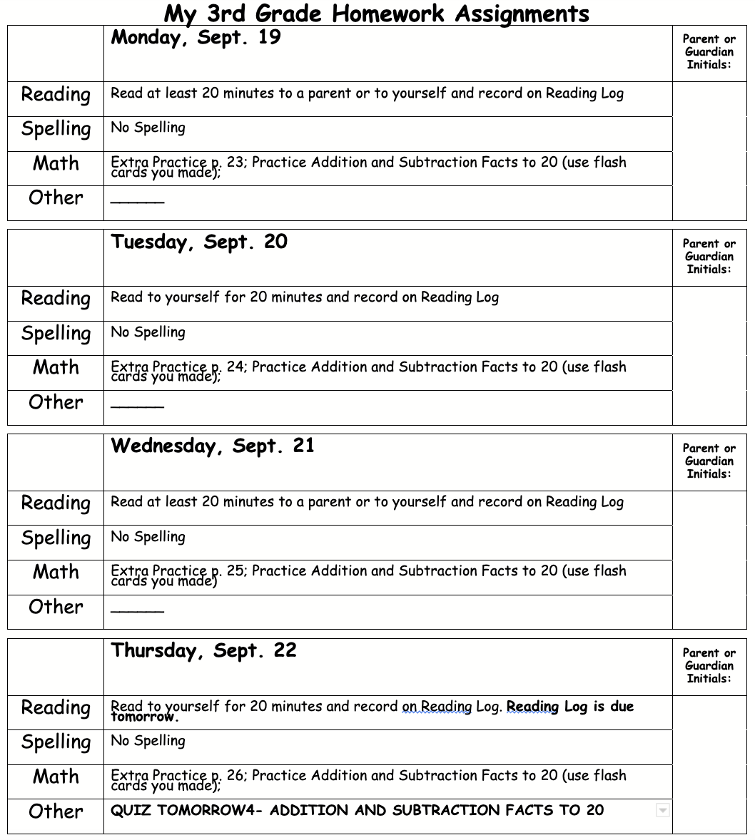 Homework Assignments for the week of 9/19